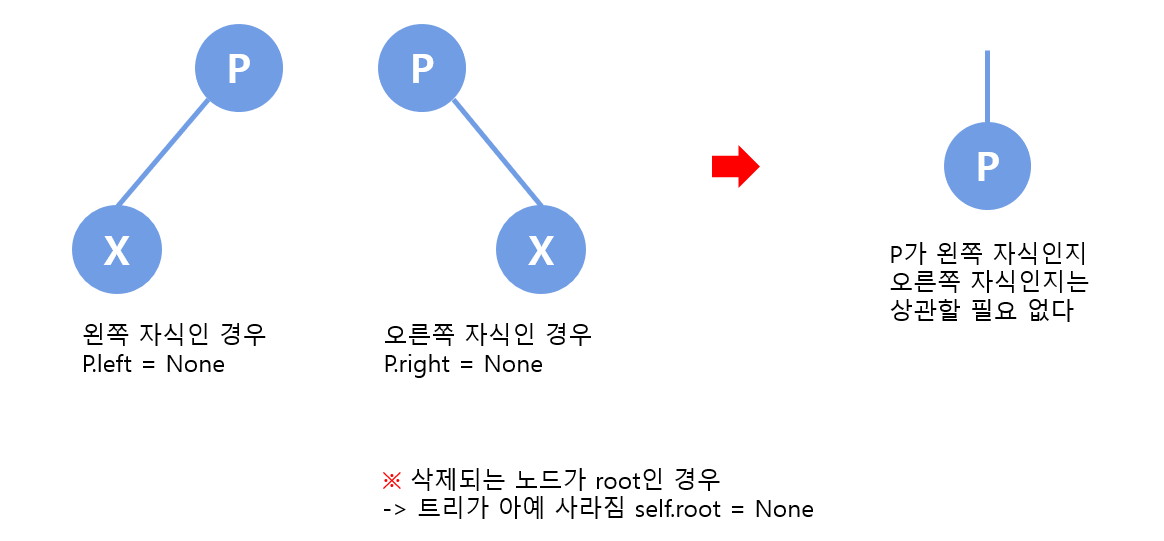- ๋ฆฌํด - ์ฐพ์ ๋ ธ๋์ ๊ทธ๊ฒ์ ๋ถ๋ชจ ๋ ธ๋(์ญ์ ์ ์ด์ฉ๋จ) ๊ฐ๊ฐ ์์ผ๋ฉด None์ผ๋ก