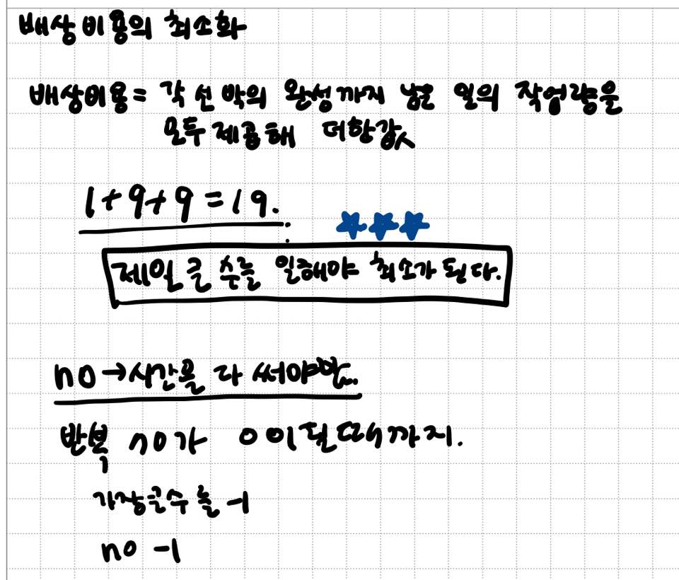 ์ฒ์์ ๋ฌธ์ ๋ฅผ ์ฝ์์ ๋ ์ด๊ฒ ๋ญ์๋ฆฐ๊ฐํ๋๋ฐ ๊ธ๋ฐฉ ์ดํดํ๋ค. ๋ญ ๋์ถฉ ์ ์ผ ํฐ์๋ฅผ ์ค์ด๋ฉด ๋ฐฐ์๋น์ฉ์ด ์ต์๊ฐ ๋๋๊น ์ ์ผ ํฐ ์๋ฅผ ๊น๋๊ฒ์ ๋ฐ๋ณตํด์ผํ๋ค๊ณ ์๊ฐํจ