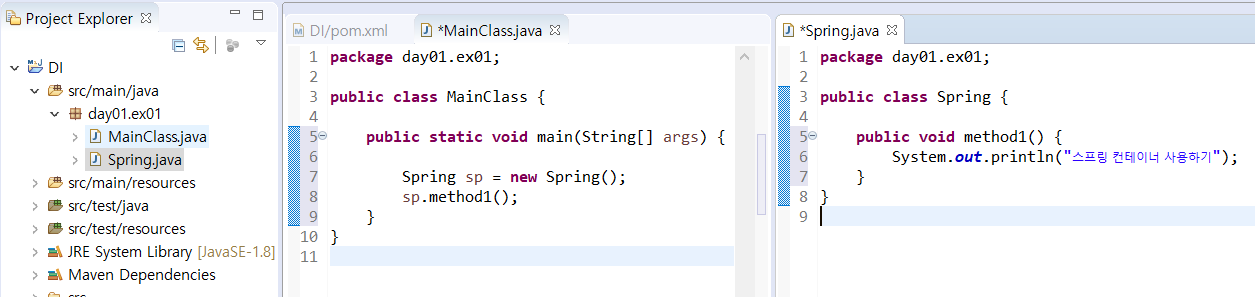 ์คํ๋ง ๋ฐฉ์์ '์์กด'์ ์ด์ฉํ๊ธฐ ์ํด์๋ Main์์ ๊ฐ์ฒด๋ฅผ ์ง์ ์์ฑํ์ง ์๊ณ ์คํ๋ง ์ค์ ํ์ผ(XML)์ ์ด์ฉํ๋ค.
