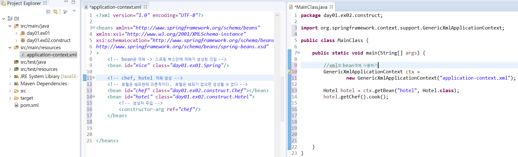 <bean id="hotel" class="day01.ex01.construct.Hotel">