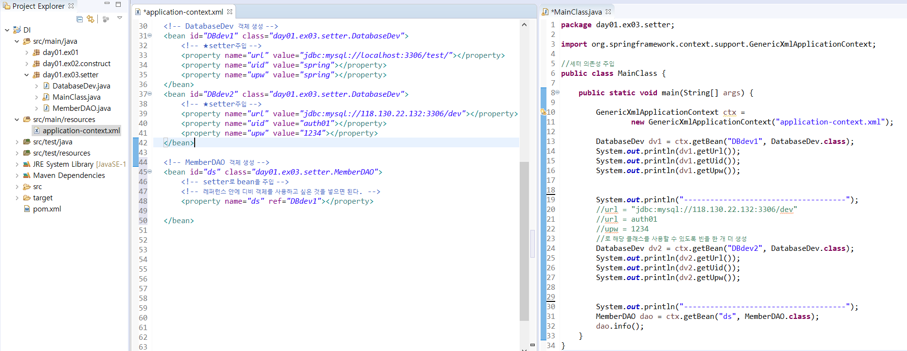 <bean id="DBdev1" class="day01.ex03.setter.DatabaseDev">