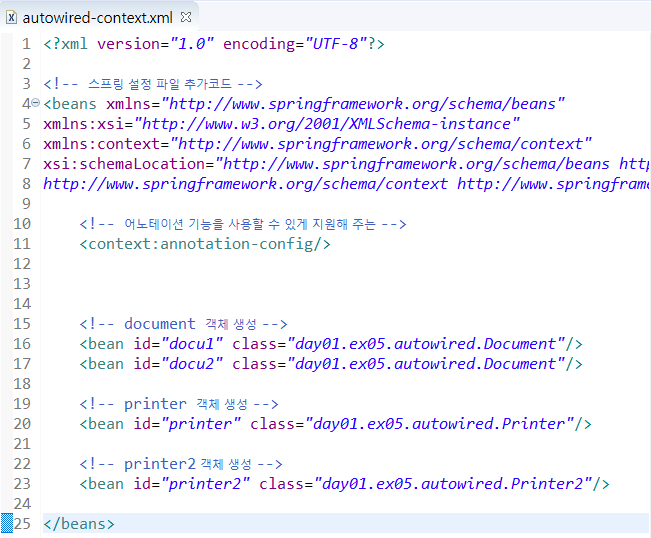 ํจํค์ง day01.ex05.autowired, autowired-context.xml ์์ฑ