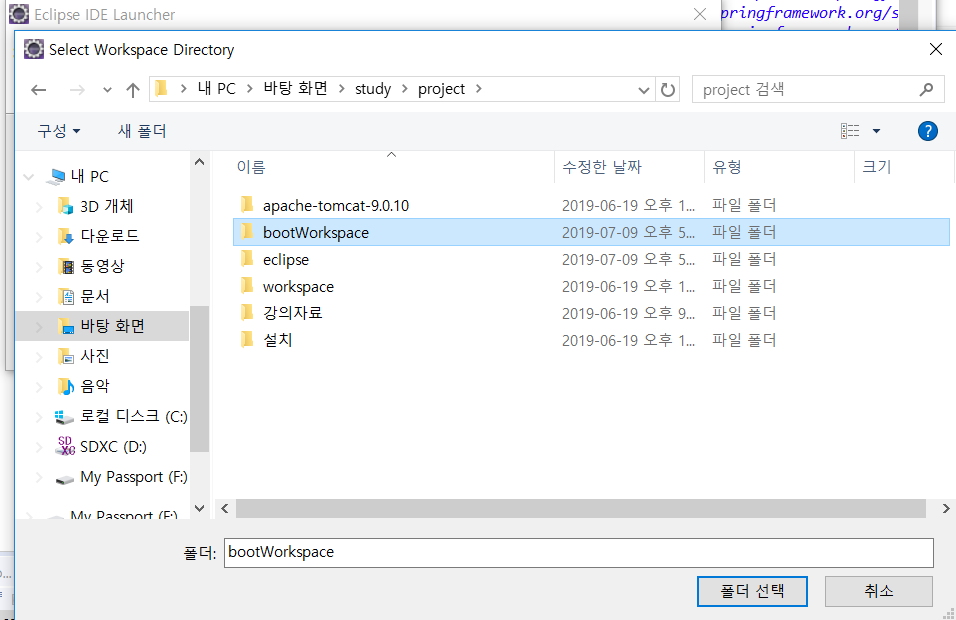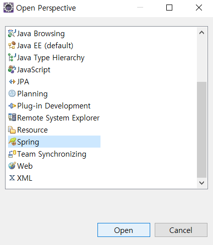 ๋จผ์ Boot๋ฅผ ์ฌ์ฉํ๊ธฐ ์ํด workspace๊ต์ฒด๋ฅผ ํด์ค๋ค. (sts์ค์น๊ฐ ๋์ด์๋ค๋ ๊ฐ์ ํ)