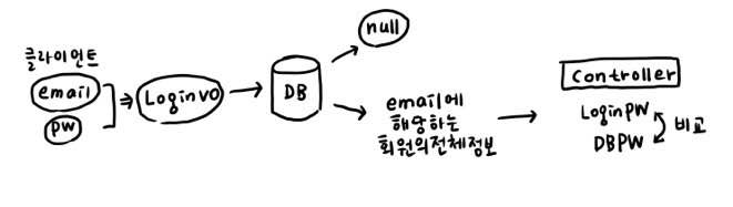 ํด๋ผ์ด์ธํธ๊ฐ ์ ์กํ email๊ณผ pw๋ฅผ ๊ฐ์ง๊ณ DB์์ ํ์์ ์ ๋ณด๋ฅผ ์กฐํํด์ ๋ถ๋ฌ์จ ๋ค์ ๊ฐ ๋น๊ต๋ฅผ ํตํด